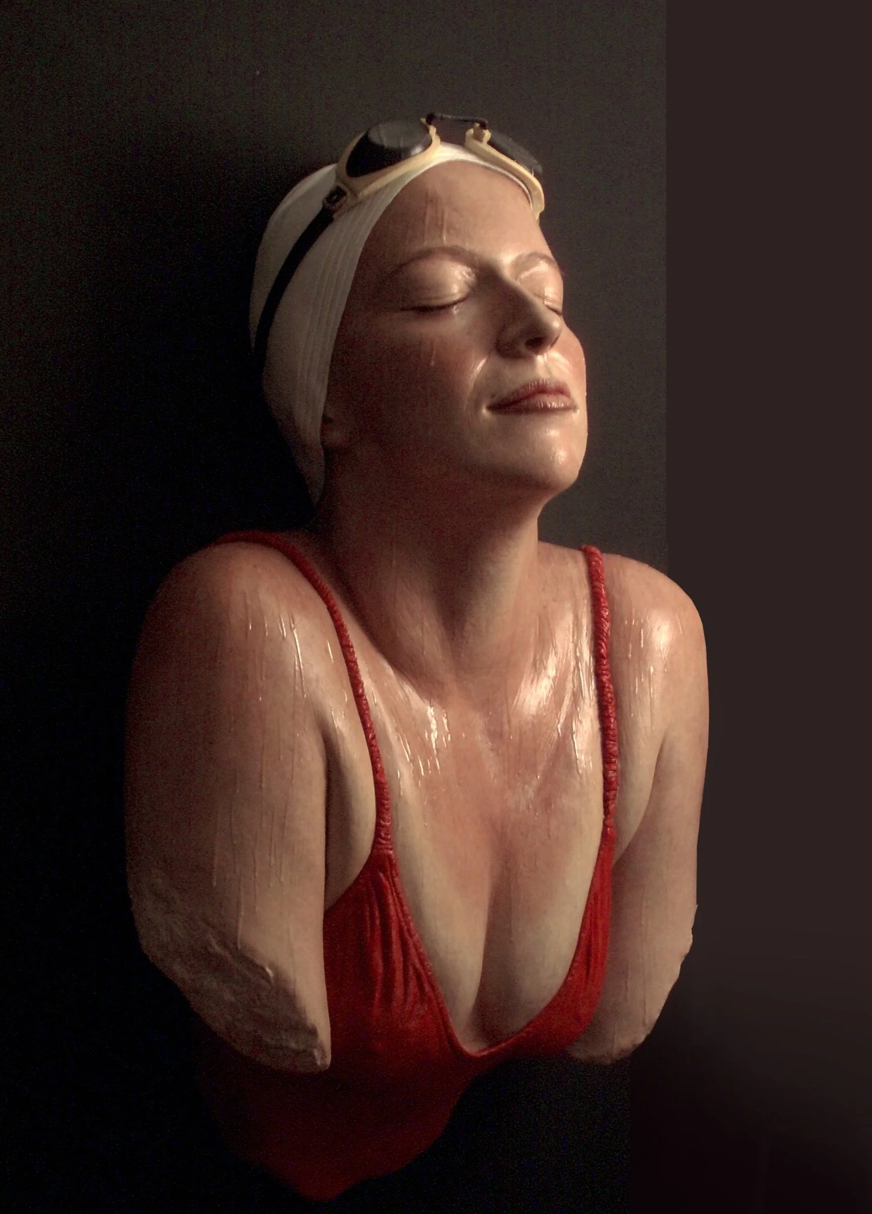 In 1979, while I sat at the beach with my three children, I saw a swimmer. She was emerging like a phoenix from the sea with water droplets streaming down her face. This vision took form in the creation of my first swimmer sculpture, which I named ‘Catalina’. She appears to all as a proud survivor, strong and beautiful. A woman who is fearless.